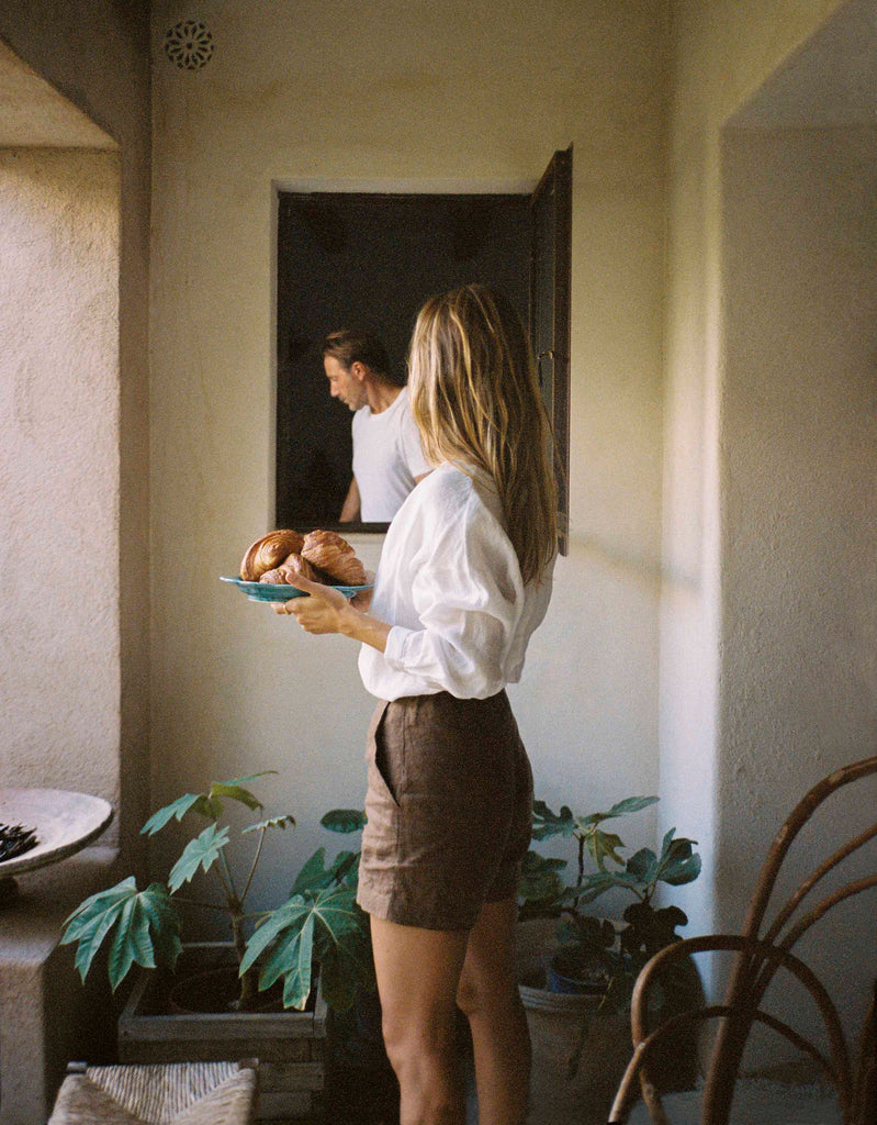 The iconic and timeless boy shirt, an idillyc summer garment to wear on top of your swimwear. Handcrafted in Argentina from linen. The perfect sophisticated shirt.